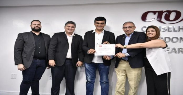 O prefeito Naumi Amorim recebeu na noite desta segunda-feira (16/12) o Prêmio Nacional de Saúde Bucal, concedido pelo Conselho Federal de Odontologia (CFO) por Caucaia ser o único município cearense [e uma das cinco cidades brasileiras de população até 500 mil habitantes] com melhores práticas no setor. A solenidade aconteceu na sede do Conselho Regional de Odontologia do Ceará, em Fortaleza.