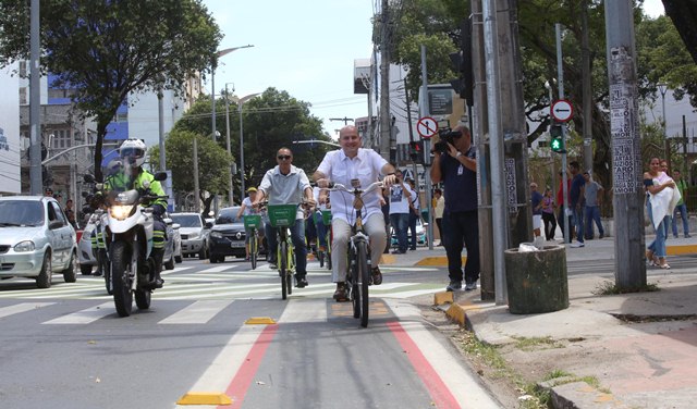 Cerca de 3,3 km de nova infraestrutura cicloviária já podem ser encontrados no entorno do Trinário. São cerca de 2,5 km só na Duque de Caxias, entre a Rua Nogueira Acioli e a Avenida Padre Ibiapina. Este é um dos percursos do seu Luiz Gonzaga, servidor público de 64 anos, que há nove trocou o carro pela bicicleta e enxerga muitas melhorias com a chegada da ciclofaixa na avenida. “Eu tô achando ótimo. Já aderi há muito tempo. Moro aqui mesmo no Centro e vou para todos os lugares de bicicleta. Agora com a ciclofaixa ficou ainda melhor. Temos segurança. É mais fácil andar de bicicleta do que de moto. Somos respeitados, temos nosso lugar”, disse.