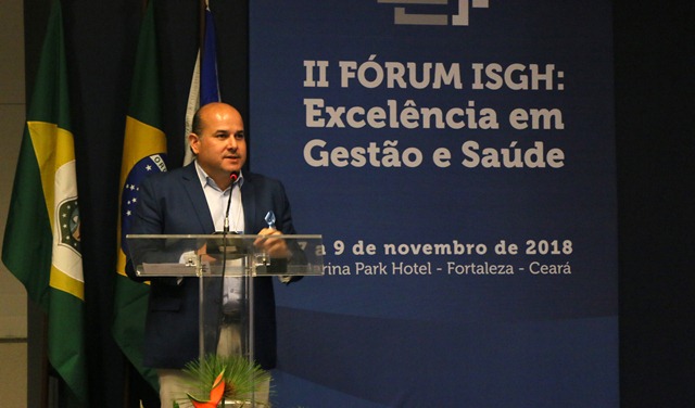 O prefeito Roberto Cláudio ministrou palestra, na tarde desta sexta-feira (09/11), durante o II Fórum ISGH: Excelência em Gestão e Saúde. Com o objetivo de trocar experiências sobre o uso eficiente de recursos públicos na área da Saúde, o evento apresentou resultados e perspectivas dos investimentos no setor de saúde do estado do Ceará. Roberto Cláudio falou sobre a possibilidade de evolução da eficiência da gestão dos recursos públicos da saúde.