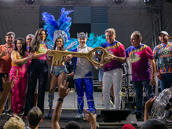 Na noite desse sábado, 18 de fevereiro, o prefeito de Várzea Alegre, Zé Helder (MDB), com a primeira-dama, Sônia Fortaleza, com a secretária de Cultura e Turismo, Toinha Pereira, demais secretários e assessores do Governo Municipal, abriram oficialmente a festa momina com a entrega da chave da cidade ao rei momo, Yago Paracampo Lima, de 25 anos, e à rainha do Carnaval, Nara Delana Barros Costa, de 23 anos.