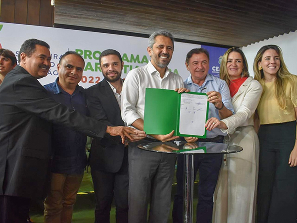 O Programa Garantia Safra está assegurado para os trabalhadores rurais de Várzea Alegre. Nessa sexta-feira, 10 de fevereiro, o prefeito Zé Helder (MDB) e o secretário municipal de Desenvolvimento Agrário e Econômico, Matias Alves, estiveram em Fortaleza, onde, na presença do Governador, Elmano de Freitas (PT), com os deputados Guilherme Landim e Júlio César, assinaram o Termo de Adesão ao programa para a safra 2022/2023.