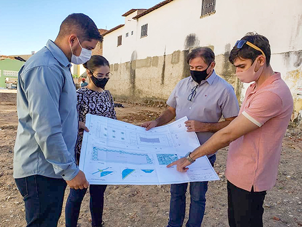 O prefeito de Várzea Alegre, Zé Helder, na companhia de engenheiros da prefeitura e da empresa Teixeira Construções, estiveram na manhã desta segunda-feira, 02 de agosto, no canteiro de obras da construção do novo mercado público da cidade.