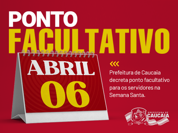 A Prefeitura de Caucaia, através de Decreto Municipal, define ponto facultativo nesta quinta-feira (06), quinta-feira Santa. De acordo com o texto, o objetivo é “proporcionar a seus servidores, disponibilidade de tempo para vivenciar o início do tríduo pascal, momento de reflexão sobre a Paixão, Morte e Ressurreição de Jesus Cristo”.