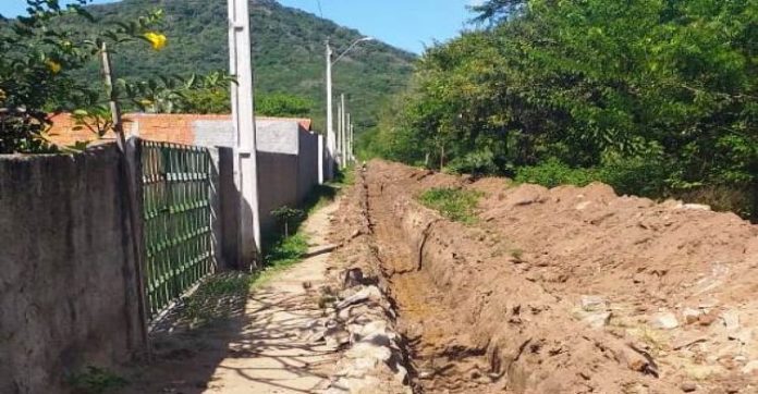 Enquanto a Prefeitura entra com todo o maquinário para a escavação, a Companhia de Água e Esgoto instala os tubos de 60 milímetros que vão levar água à comunidade.