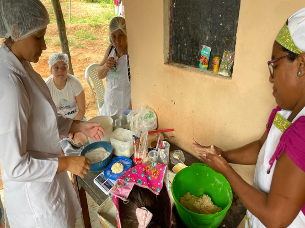 Na última terça-feira (11), a Prefeitura de Caucaia, por meio do Projeto Prosperar, maior programa de capacitação profissional de Caucaia, promoveu uma consultoria de criação de tabela nutricional dos produtos feitos pelo Grupo Sabores do Juá, formado por 10 produtoras rurais da Serra do Juá que produzem bolo de banana, cocada e maria maluca. O objetivo da ação é levar conhecimento sobre nutrição e a importância de deixar os produtos e as embalagens mais profissionais para a venda.
