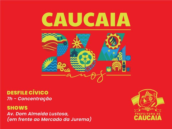 Estão marcados para este domingo (15), data em que Caucaia celebra 264 anos de história, dois grandes eventos no município: o Desfile Cívico e um Show comemorativo aberto ao público. O primeiro acontece a partir das 07h, no centro de Caucaia. O palco principal, que abrigará o prefeito de Caucaia, Vitor Valim, e demais autoridades, será montado em frente à antiga Praça da Câmara. O desfile contará com vários órgãos da gestão municipal, escolas da educação especial, infantil, fundamental e étnica, além de escolas estaduais e bandas convidadas.