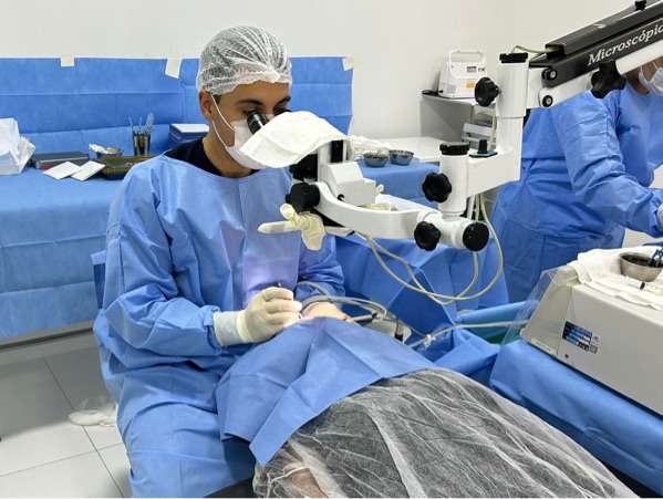 Após o procedimento, passam por consulta de acompanhamento e recebem um kit com colírio e óculos de sol, garantindo maior conforto e proteção durante o período de recuperação.