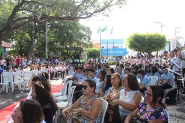 Hasteamento da Bandeira Desfile Cívico das Escolas: Creche Criança Feliz/ E.E.F. Onélia Pereira de Lavor/ E.E.F. José Cardoso de Araújo/ E.E.F. Osmindo Mangueira/ E.E.F. José Pereira Lopes/ E.E.F. Marta Maria Sobreira/ Escola Philia.