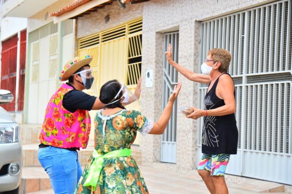 Nas visitas, nas portas de suas casas e respeitando o distanciamento, os idosos puderam assistir um pouco de forró e dos passos das quadrilhas juninas. Muitos dançaram animadamente e agradeceram ao Governo Municipal pelo gesto de atenção e de carinho.