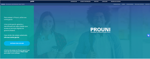 1º passo: acessar o site prounialuno.mec.gov.br e fazer login com o perfil Gov.br.