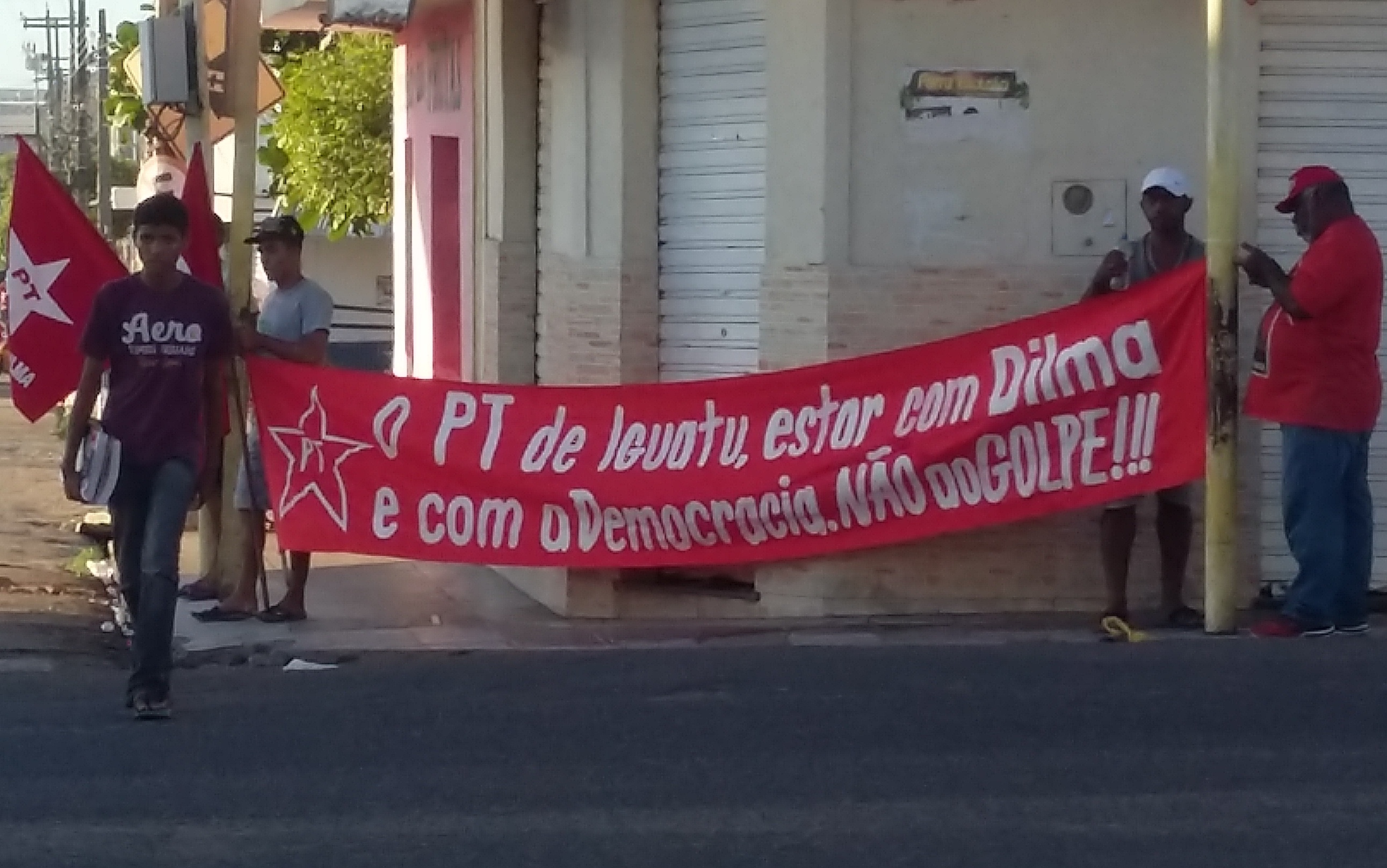 O ato em Iguatu-Ce, em apoio à presidenta Dilma, aconteceu no bairro Alto do Jucá, organizado pelo Diretório Municipal do Partido dos Trabalhadores de Iguatu-Ce, pelo Sindicato dos Comerciários de Iguatu e por trabalhadores (as) da base da Central Única dos Trabalhadores- CUT, representando o PT/Iguatu, Bento Araújo, Lula, Aracy e Pablo Neves, os comerciários, Francimar e Claudemir participaram ativamente do ato.