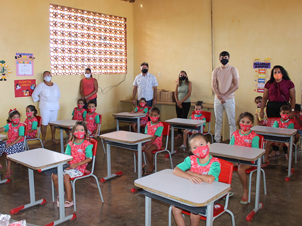 Os alunos receberam fardamento e máscaras e os profissionais da educação dessas unidades escolares receberam EPIs – Equipamentos de proteção Individual.