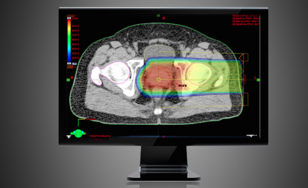 Software mostra planejamento de aplicação de radioterapia de prótons em tumores de próstata (Foto: Divulgação Varian)