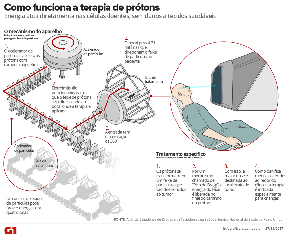 Induzida por prótons, a nova terapia consegue ser direcionada especificamente para o tumor-alvo. Células saudáveis, dessa maneira, ficam praticamente livres da radiação. Uma outra indicação da abordagem é a aplicação em alguns tumores inoperáveis, como alguns de cabeça e pescoço. Células malignas próximas a regiões sensíveis no cérebro, por exemplo, também se beneficiaram de uma radiação mais focada — como foi o caso do garoto no Reino Unido.