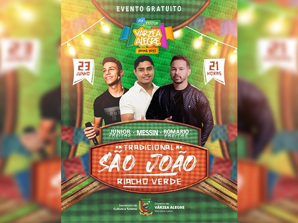 O município de Várzea Alegre se prepara para mais uma noite de animação e tradição junina. O São João do Riacho Verde promete agitar a cidade na próxima sexta-feira, dia 23 de junho, como parte das festividades do XIX Festejo Várzea Alegre Junina 2023.