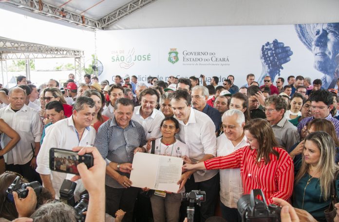 A solenidade foi presidida pelo governador Camilo Santana, que esteve acompanhado do secretário do Desenvolvimento Agrário, Dedé Teixeira, de deputados federais, estaduais, lideranças do movimento agrário, agricultores, vereadores e prefeitos do Interior.