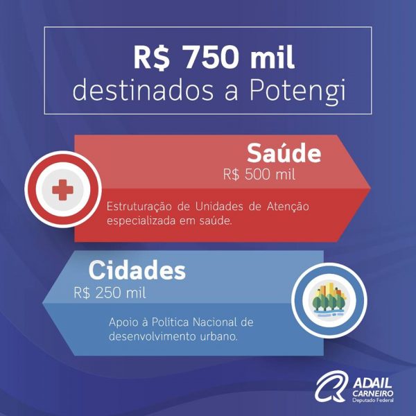 O deputado Adail Carneiro indicou para o orçamento da União o valor de R$ 750 mil, que serão investidos R$ 500 mil para a estruturação de unidades de atenção especializada em saúde, que inclui reforma e ampliação de Unidades de Saúde na Cidade. “Também serão investidos mais R$ 250 mil em melhorias na infraestrutura urbana da cidade. Os recursos estão alocados no Orçamento Impositivo do Governo Federal deste ano. Agora, a prefeitura precisará cumprir algumas determinações técnicas e jurídicas para receber os valores” explicou o parlamentar.