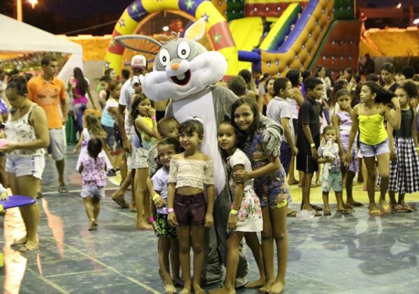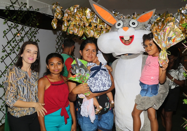 A programação teve sequência à noite, com cerca de 200 crianças participando da festa temática da Páscoa. As crianças foram envolvidas na festa com brincadeiras, brinquedos como o pula-pula, tiveram lanches e ganharam ovos de chocolate.