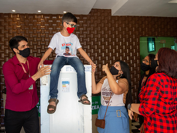 Em Várzea Alegre, na manhã desta quarta-feira, 16 de junho de 2021, os estudantes Breno de Lima Mendes, José Ryan Ferreira de Morais e Maria Júlia Félix de Sousa, receberam do Secretário e da Subsecretária de Educação, Antônio Fernandes e Liduina Sousa, a premiação por terem sido os vencedores do concurso de homenagem às mães intitulado “Ei, Mãe! Escuta Meu Recado”.