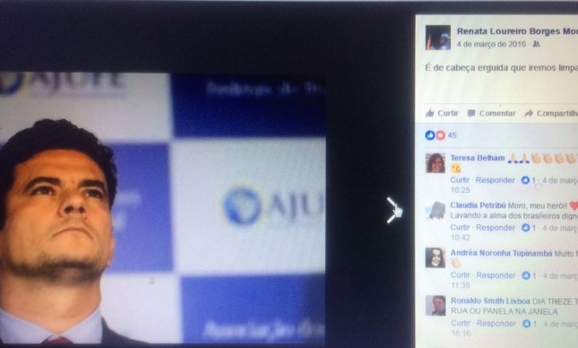 A hipocrisia e a cara de pau não têm limites. No dia 4, a empresária Renata Monteiro postou em sua página no Facebook uma foto de Sergio Moro e tascou um comentário de incentivo ao juiz: