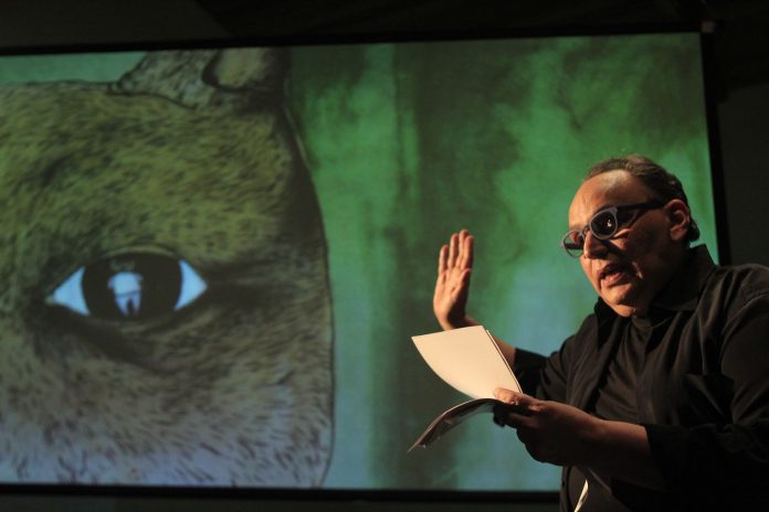 “As imagens que acompanham o texto têm um papel vital de mostrar a fisicalidade dos personagens, num “espetáculo para ler”, onde não há atores, apenas caracteres que se comunicam através da voz de um único narrador”, define Cacá.