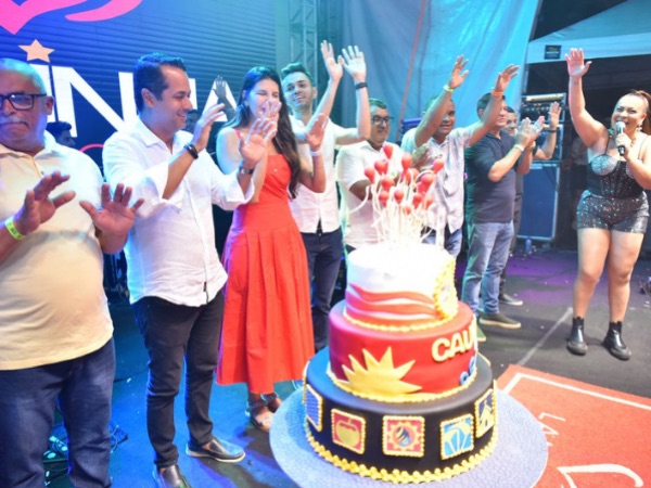O show contou ainda com um bolo de três andares, feito com a identidade visual do aniversário da cidade. O prefeito de Caucaia, Vitor Valim, compareceu ao evento e realizou uma breve fala, afinal, em suas palavras, a noite era de festejar: “Celebrarmos as nossas conquistas, os nossos avanços. Celebrarmos o fato de sermos a maior cidade com transporte gratuito para todos, de estarmos revitalizando o nosso litoral, além de espaços públicos tradicionais, como o Mercado da Jurema. Celebrarmos o fato de uma gestão estar olhando pela primeira vez verdadeiramente para o homem do campo, com o asfalto das nossas estradas vicinais, e estarmos recuperando o nosso litoral. Celebramos a história fazendo história “, disse.