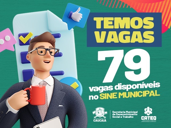 Consultor de vendas, motorista entregador e pedreiro são algumas das vagas. Para se candidatar, basta procurar o SINE Caucaia, localizado no prédio do Centro de Apoio ao Trabalho, Empreendedorismo e Qualificação (CATEQ), na rua 15 de novembro, 1478 – no Centro, das 08h às 16h.