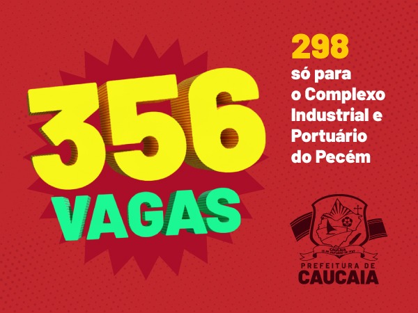 [11:09, 06/09/2023] Jonas: Véspera de feriado com recorde de vagas disponível no SINE Municipal de Caucaia. São 356 oportunidades, sendo 298 são só para o Complexo industrial e portuário do Pecém. Entre as áreas demandadas pelo órgão estão: manutenção elétrica, motoristas portuário, auxiliar de armazém, técnico mecânico, montador de andaime, pintor industrial, entre outras.