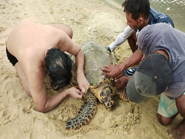 O Instituto do Meio Ambiente de Caucaia (IMAC) registrou, no último sábado (01/04), na praia do Cauípe, o resgate de uma tartaruga da espécie Eretmochelys imbricata, popularmente conhecida como tartaruga de pente. O animal foi resgatado com a ajuda de dois pescadores locais. De acordo com o IMAC, a tartaruga fez um ninho na região e, quando estava no caminho de retorno para o mar, ficou desorientada e foi em direção a uma lagoa pequena, que fica entre o mar e a grande lagoa do Cauípe. Após avaliação do animal pelo IMAC, a tartaruga foi retirada da lagoa e devolvida ao mar.