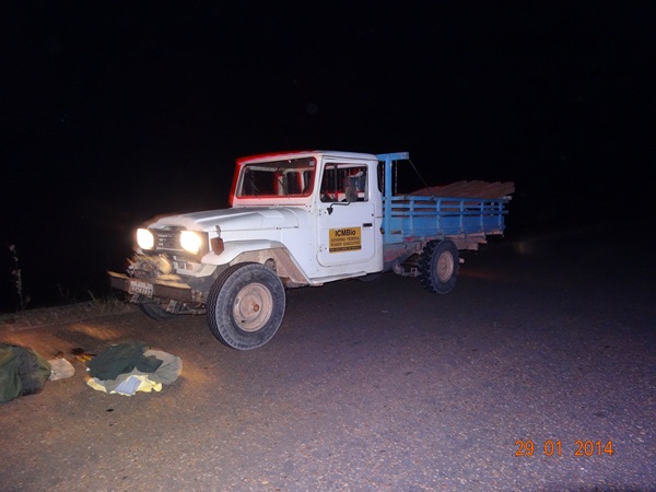 O veículo Toyota pertence ao Instituto Chico Mendes de Conservação da Biodiversidade (ICMBio) e era usado para fazer o carregamento da madeira, tais como22 pernamancas, um motosserra marca Sthil, sem corrente, um motosserra marca rushama, com corrente.
