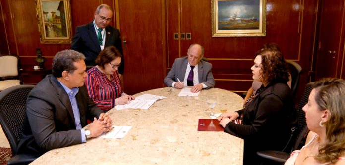 O presidente do Tribunal de Justiça do Ceará (TJCE), desembargador Gladyson Pontes, assinou Termo de Cooperação Técnica com o Centro Universitário Fametro para disponibilizar atendimento odontológico a vítimas de violência doméstica. O ato de assinatura ocorreu na sede do Tribunal, no Palácio da Justiça, nesta segunda-feira (10/11).