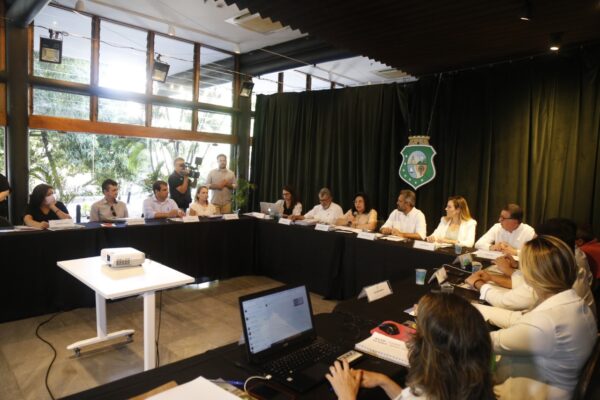 Na tarde desta quarta-feira (9/11), as equipes de transição do Governo do Ceará realizaram a primeira reunião presencial, no Palácio da Abolição. Além dos integrantes da comissão de transição, também estiveram presentes ao primeiro encontro, a governadora em exercício do Ceará, Maria Nailde Pinheiro Nogueira; o governador eleito, Elmano Freitas; e a vice-governadora eleita, Jade Romero.