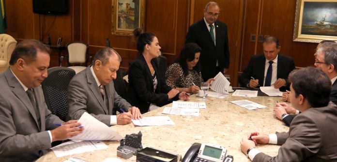 O chefe do Judiciário cearense, desembargador Washington Araújo, recebeu em seu Gabinete os juízes das Varas de Execução Penal e de Execução de Penas e Medidas Alternativas, além de representantes do Instituto de Assistência e Proteção Social (IAPS) e da Secretaria Municipal dos Direitos Humanos e Desenvolvimento Social de Fortaleza (SDHDS) para a assinatura dos documentos.