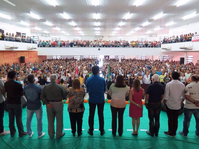 À tarde desta quarta-feira (18/10) foi de homenagens aos professores da rede de ensino de Caucaia. A Secretaria Municipal de Educação (SME) reuniu mais de dois mil professores no salão principal da Igreja Assembleia de Deus (Igreja Redonda) para comemorar o dia em alusão à categoria, celebrado no último domingo (15/10).