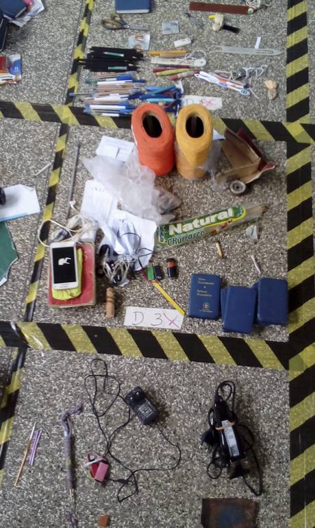 Somente uma arma de fogo, de fabricação caseira, foi encontrada. Os militares apreenderam ainda 316 celulares, 163 chips e 238 acessórios de telefone (como fone de ouvido e carregador). Trouxas (92) e tabletes (18) de drogas, dois rádios transmissores, 66 televisores e 83 antenas improvisadas também foram localizados nas varreduras, além de 40 fogões ou fogareiros improvisados e três botijões de gás.