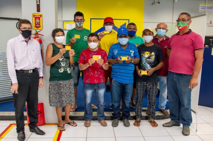 Em Várzea Alegre, 18 pessoas que trabalham com materiais recicláveis receberam nesta segunda-feira, 30, o Auxílio-Catador, benefício implantado pelo Governo do Estado, que paga ¼ do salário mínimo (R$ 261,25) para esses trabalhadores.
