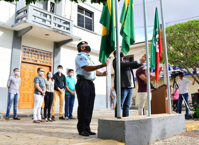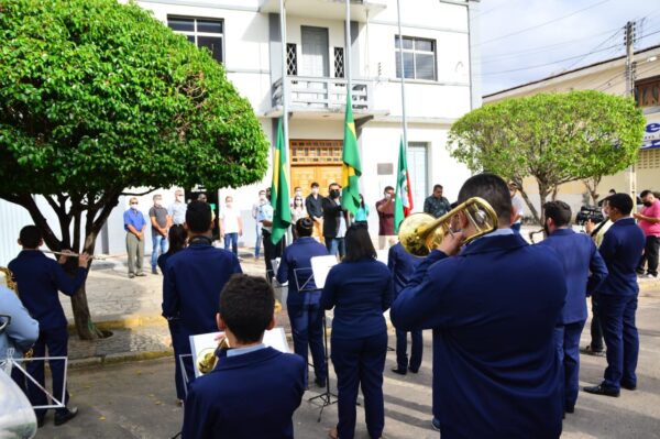O ato cívico foi registrado no Paço Municipal Prefeito Francisco Correia Lima (Dr. Hamilton) com acompanhamento da Banda de Música Maestro José Ribeiro, que executou o hino do município.