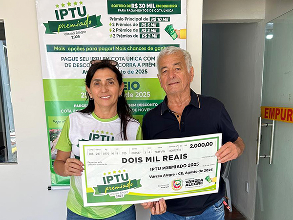 O vice-prefeito Antônio Neto também elogiou a iniciativa. “Essa campanha mostra que é possível incentivar o pagamento dos tributos com criatividade e transparência. Os prêmios são uma forma justa de retorno àqueles que acreditam e investem no desenvolvimento de Várzea Alegre”, pontuou.