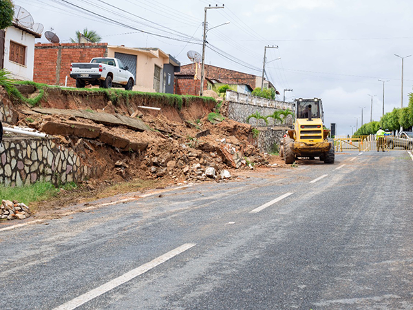 Quando o dia amanheceu, o secretário de Infraestrutura, Elonmarcos Correia, já estava com uma equipe desobstruindo parte da via que ficou tomada por entulhos da queda do muro.