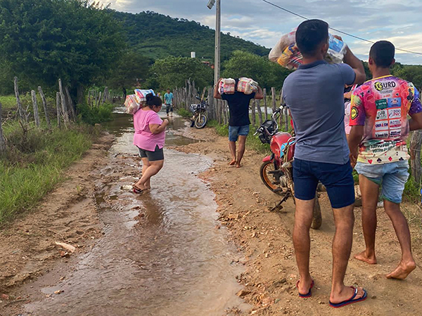 No sítio Pé de Serra, voluntários fizeram a travessia do Riacho do Machado para fazer chegar as doações até as pessoas. No Olho D’Água, os produtos foram entregues aos Agentes de Saúde para entregar posteriormente às famílias.