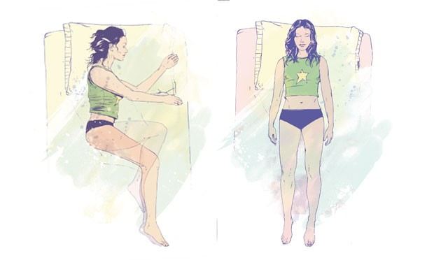 “Dessa forma, a musculatura é alongada e os espaços naturais existentes entre uma vértebra e outra são ampliados, aliviando a compressão sobre os nervos que passam na região e que provocam a sensação dolorosa”, explica o neurocirurgião Paulo Porto Melo, que é colaborador do Departamento de Neurocirurgia da Universidade de Saint Louis, nos EUA. Além disso, a coluna fica toda alinhada, evitando algum desequilíbrio. Os braços devem ficar relaxados à frente. Talvez tenha dificuldade em dormir assim da primeira vez, mas vale insistir.