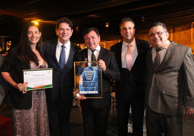 No recebimento da premiação o prefeito subiu ao palco acompanhado da primeira-dama Sônia Fortaleza, do vice-prefeito Dr. Fabrício Rolim, do deputado federal Domingos Neto e de Socorro França – secretária de Proteção Social, Justiça, Mulheres e Direitos Humanos.