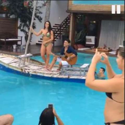 Na piscina, Zezé ainda cantou a canção “Na Hora H”, que contou com a ajuda dos hóspedes que acompanharam o show. O sertanejo e a namorado seguem muito colados e o artista reativou sua conta no Instagram com uma declaração à Graciele. Ele abandonou a rede social após boatos sobre seu relacionamento.